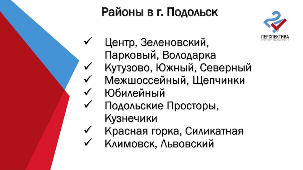 Районы в г. ПодольскЦентр, Зеленовский,