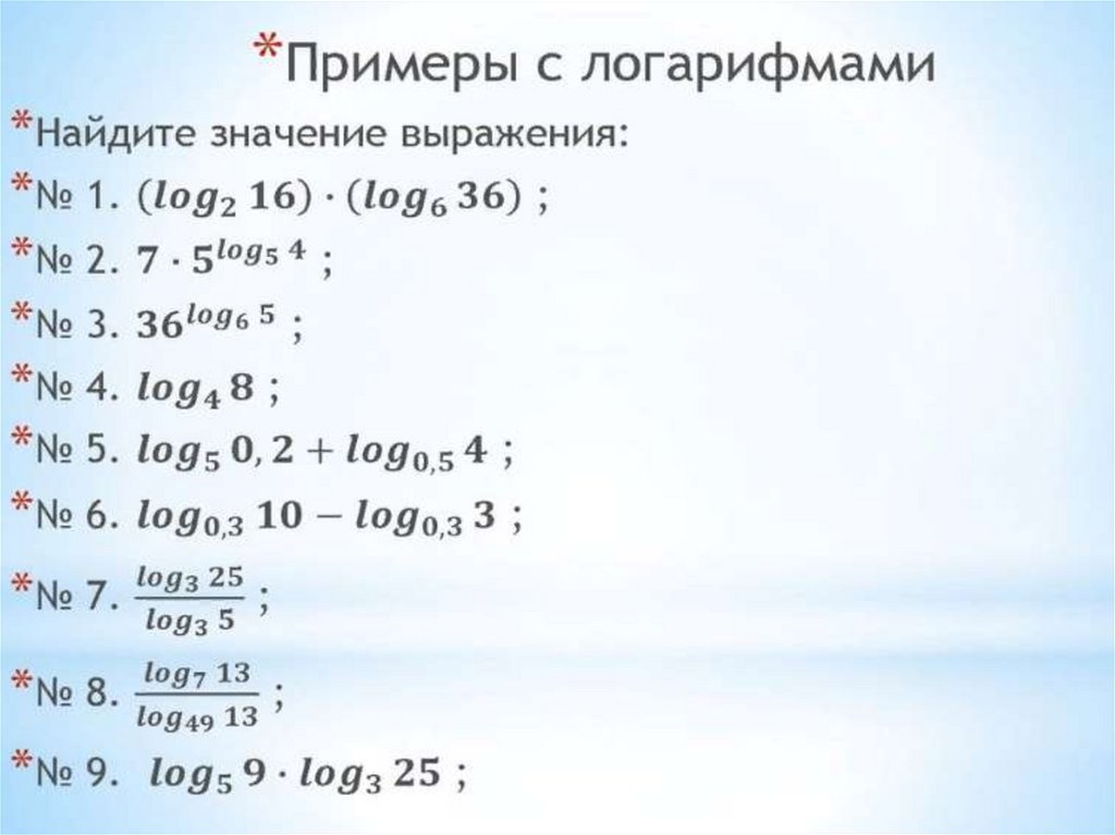 Вычисление логарифмов по свойствам