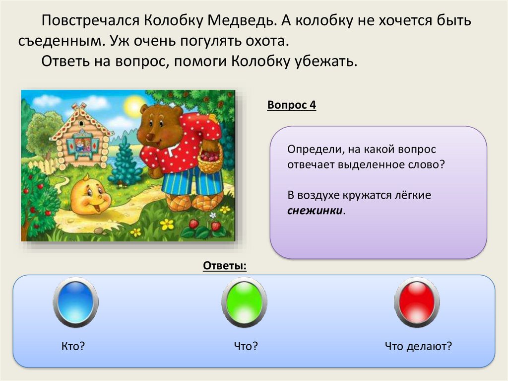 Повстречался Колобку Медведь. А колобку не хочется бытьсъеденным. Уж очень погулять охота.