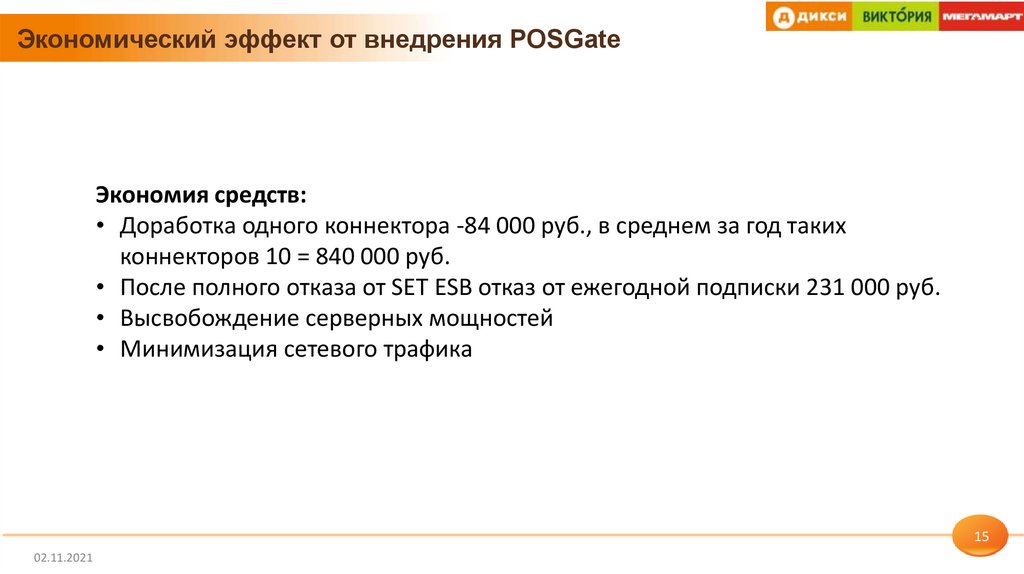 Экономический эффект от внедрения POSGateЭкономия средств: