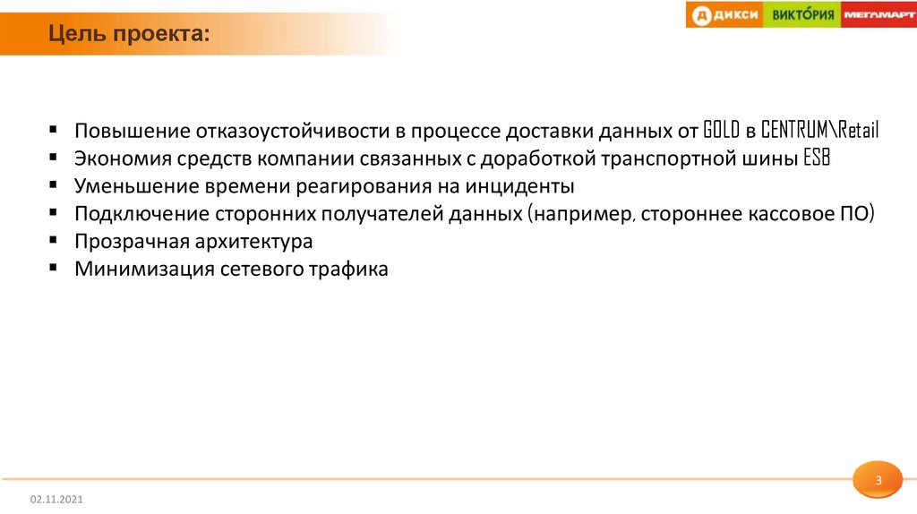 Цель проекта:Повышение отказоустойчивости в процессе доставки данных от GOLD в CENTRUM\Retail