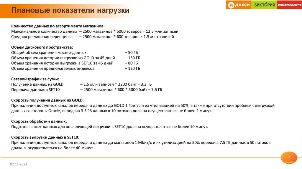 При наличии доступных каналов передачи данных до GOLD 1 Гбит/с и их утилизацией на 50%, а также при отсутствии проблем с выгрузкой