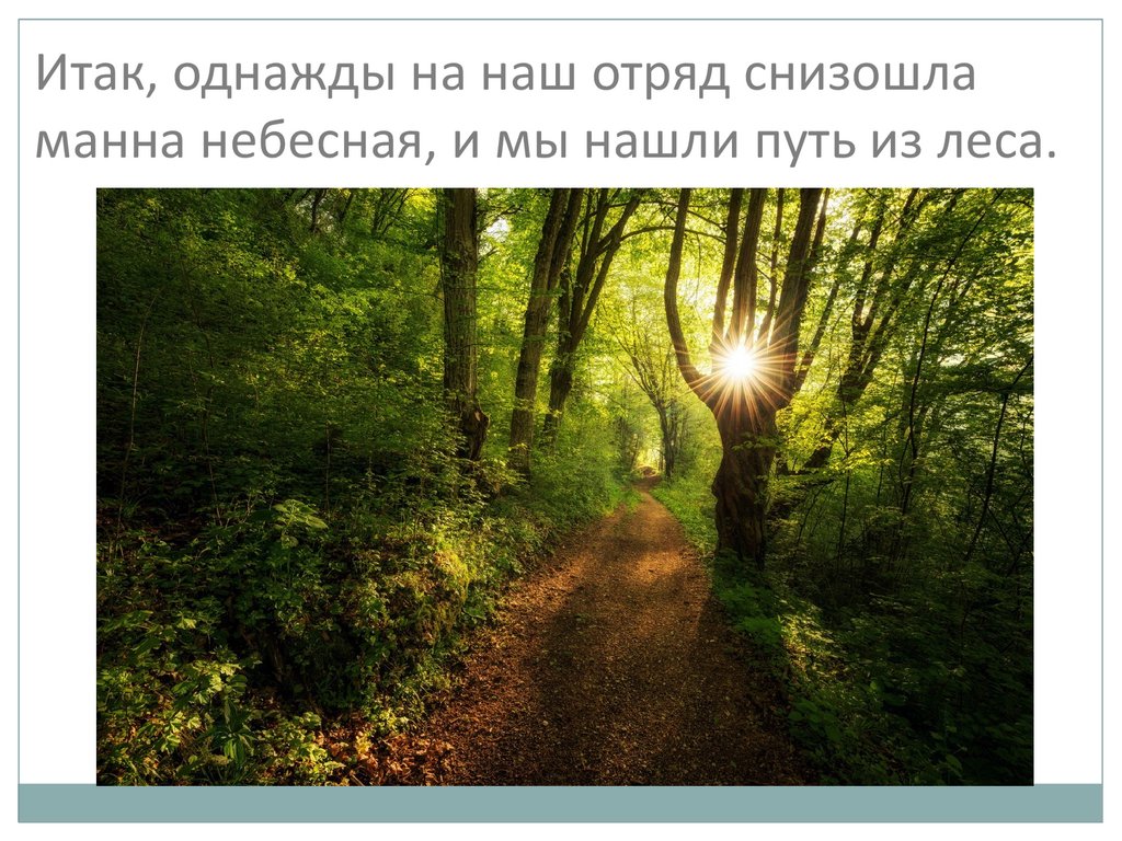 Итак, однажды на наш отряд снизошламанна небесная, и мы нашли путь из леса.
