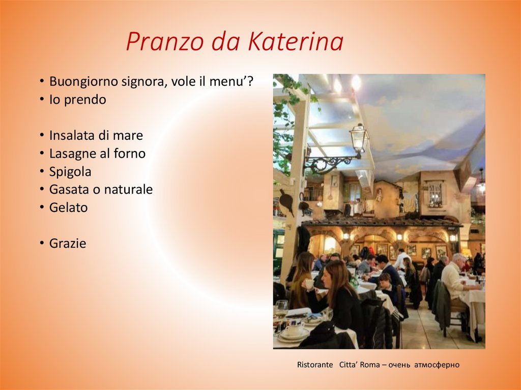 Pranzo da Katerina• Buongiorno signora, vole il menu’?