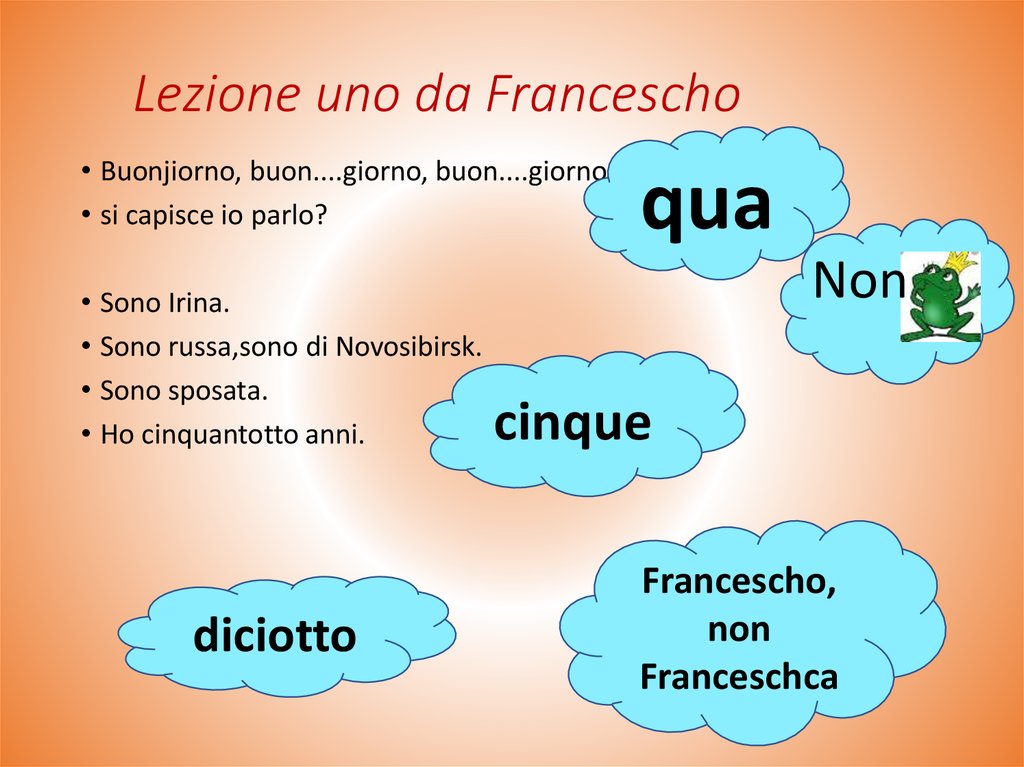 Lezione uno da Francescho• Buonjiorno, buon....giorno, buon....giorno