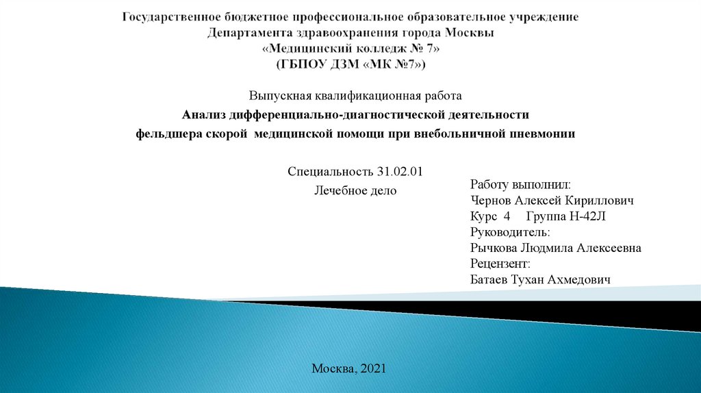 Анализ дифференциально-диагностической деятельности фельдшера скорой медицинской помощи при внебольничной пневмонии