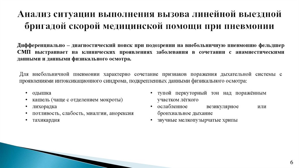 фельдшера скорой медицинской помощи при внебольничной пневмонии