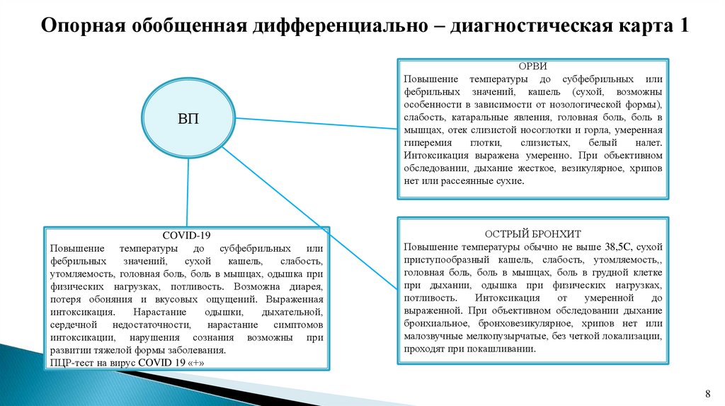 Опорная обобщенная дифференциально – диагностическая карта 1ВП