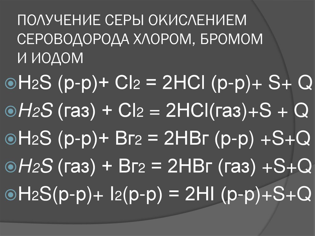 Н2S (р-р)+ Вг2 = 2НВг (р-р) +S+Q