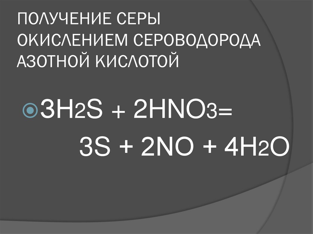 ПОЛУЧЕНИЕ СЕРЫОКИСЛЕНИЕМ СЕРОВОДОРОДА
