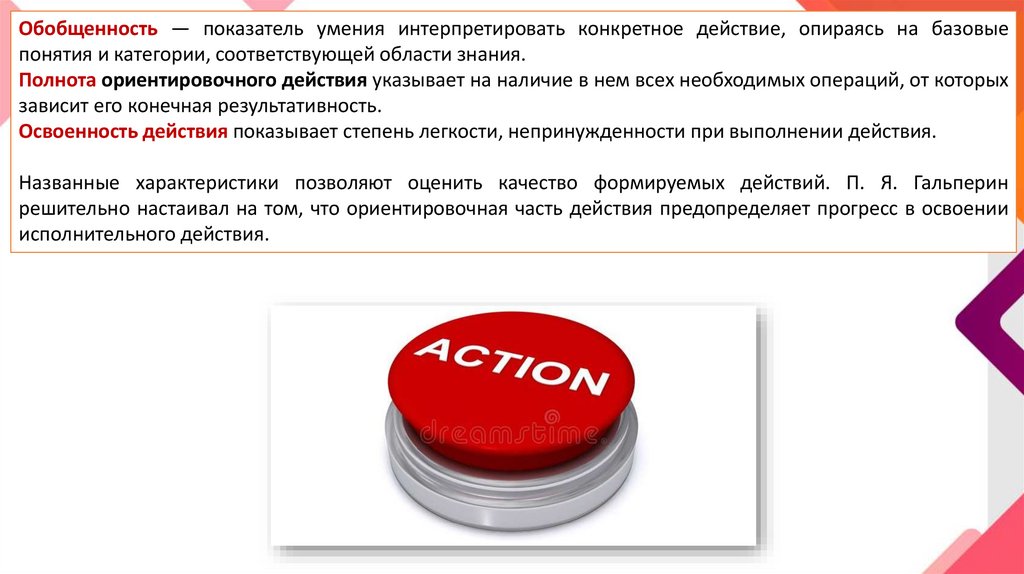 Названные характеристики позволяют оценить качество формируемых действий. П. Я. Гальперин