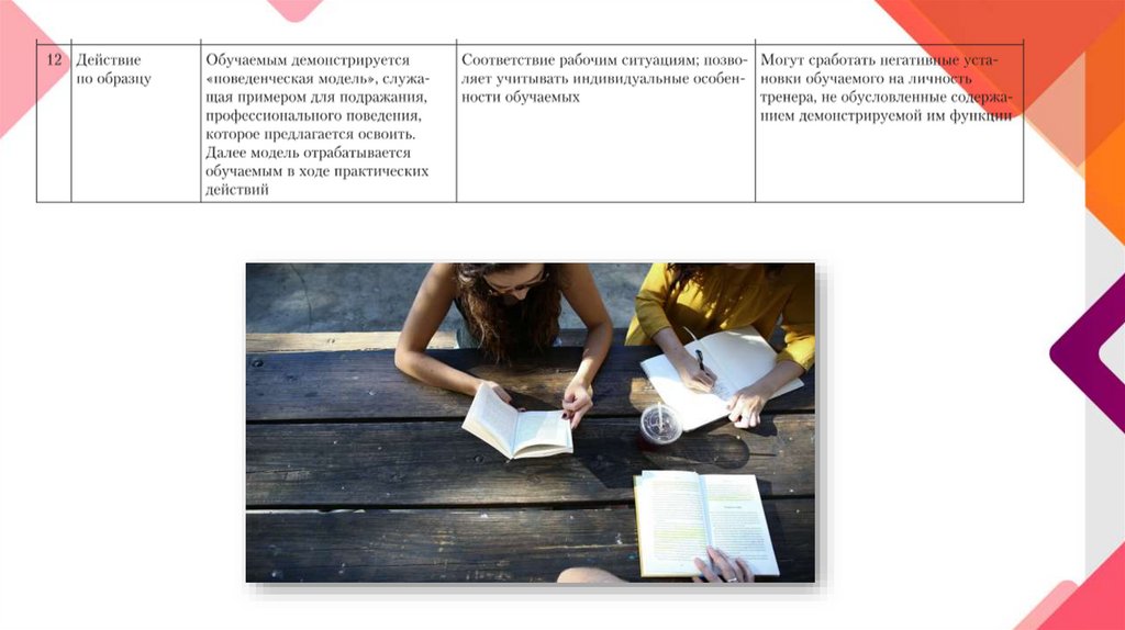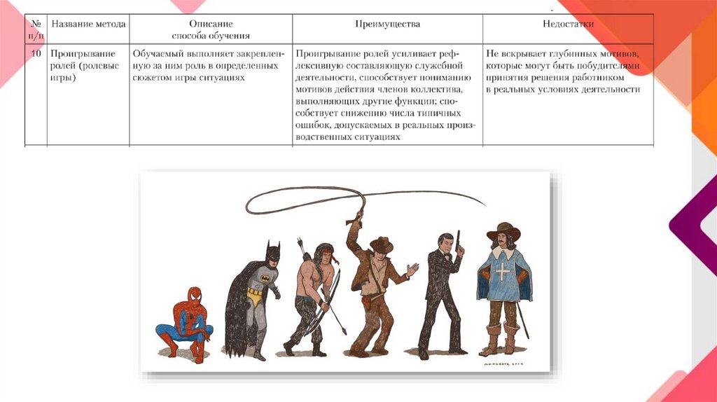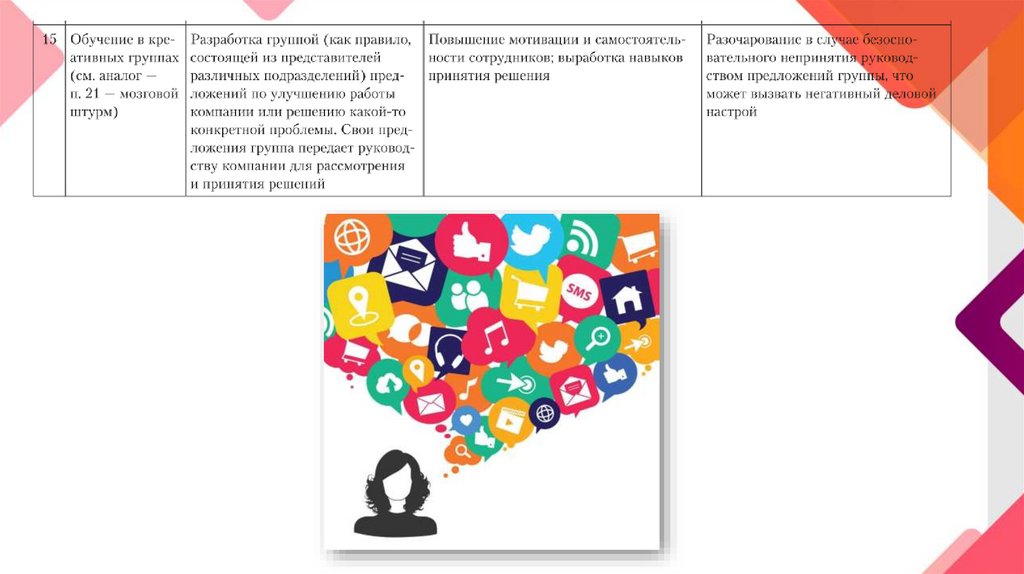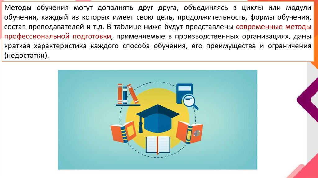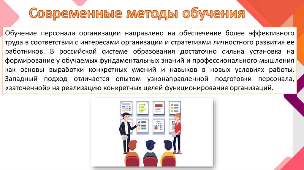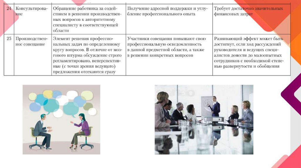 Представленные в таблице методы внутрифирменного профессионального обучения,безусловно, не исчерпывают всего разнообразия методов. Это методы, которые применяют для