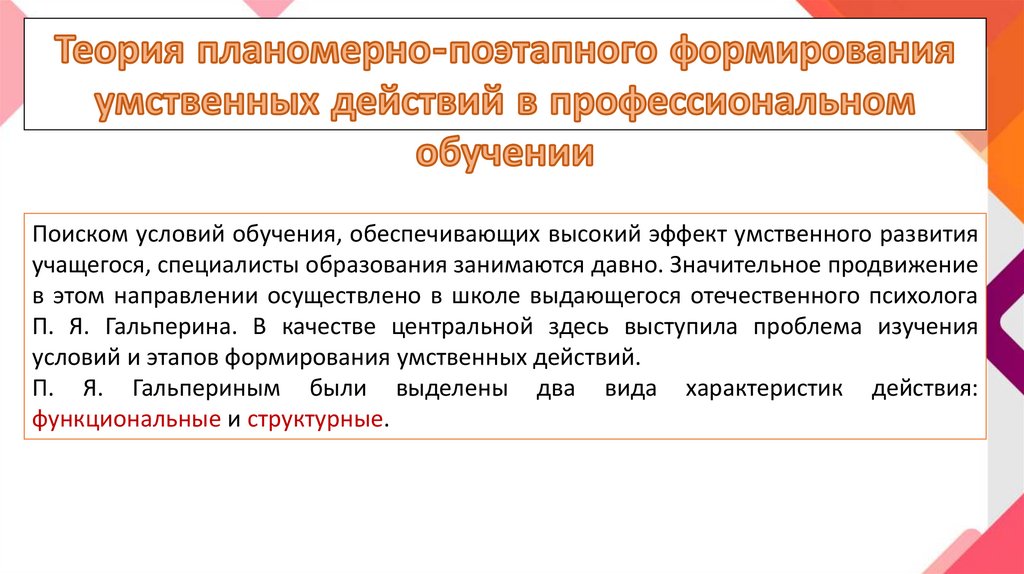 П. Я. Гальперина. В качестве центральной здесь выступила проблема изучения