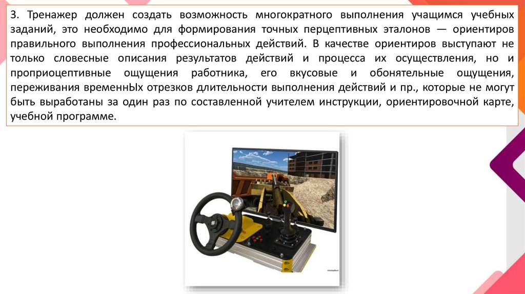 2. Выполнение учебных заданий на тренажере должно обеспечить учащегося внешней объективной