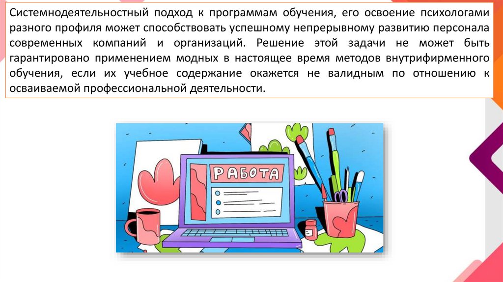 Системнодеятельностный подход к программам обучения, его освоение психологамиразного профиля может способствовать успешному непрерывному развитию персонала