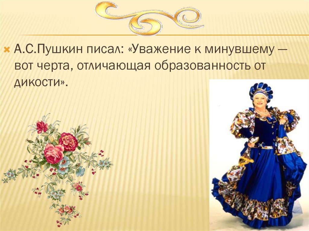 А.С.Пушкин писал: «Уважение к минувшему —вот черта, отличающая образованность от