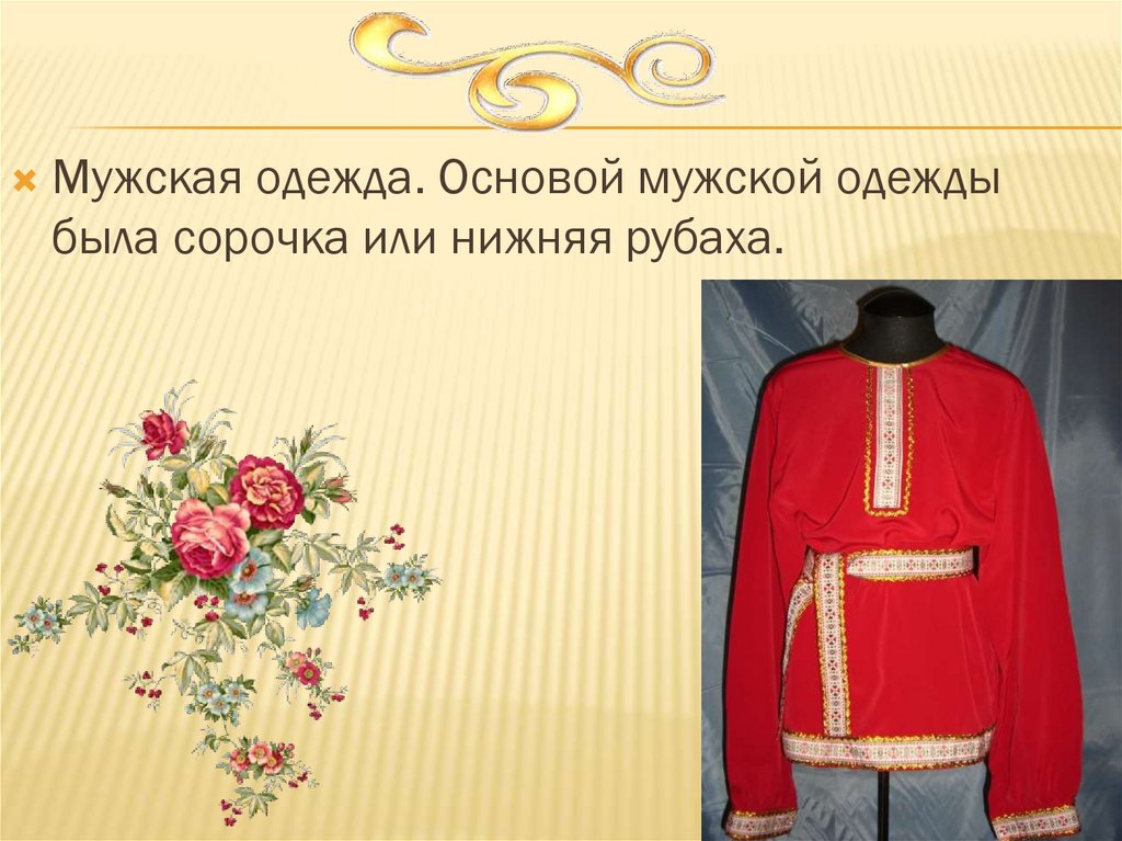 Мужская одежда. Основой мужской одеждыбыла сорочка или нижняя рубаха.