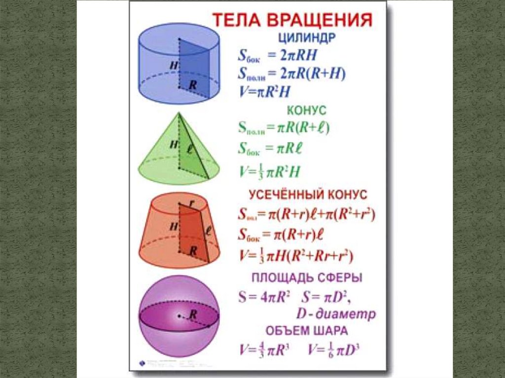 Площади поверхностей и объёмы тел вращения