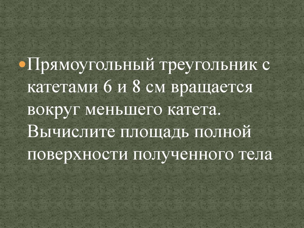 Прямоугольный треугольник скатетами 6 и 8 см вращается