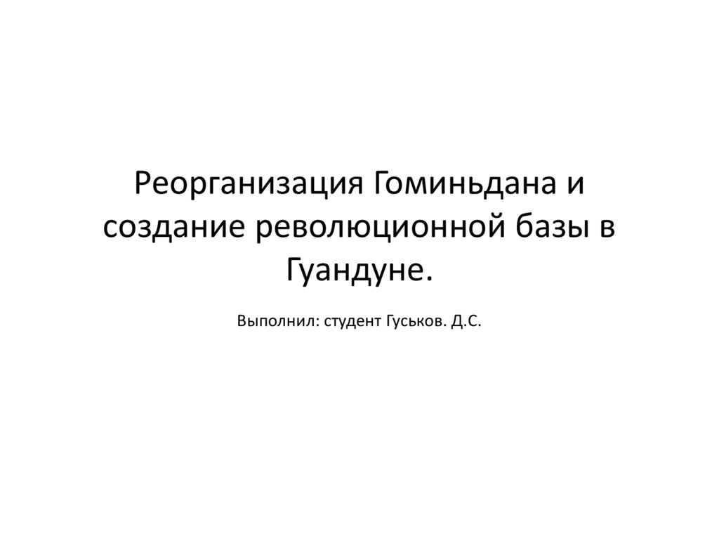 Реорганизация гоминьдана и создание революционной базы в Гуандуне