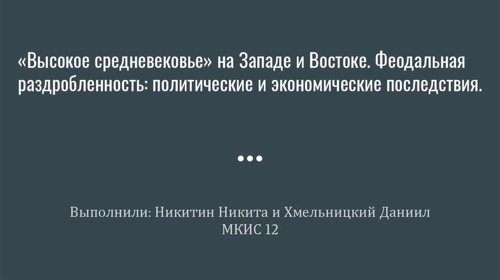«Высокое средневековье» на Западе и Востоке. Феодальнаяраздробленность: политические и экономические последствия.