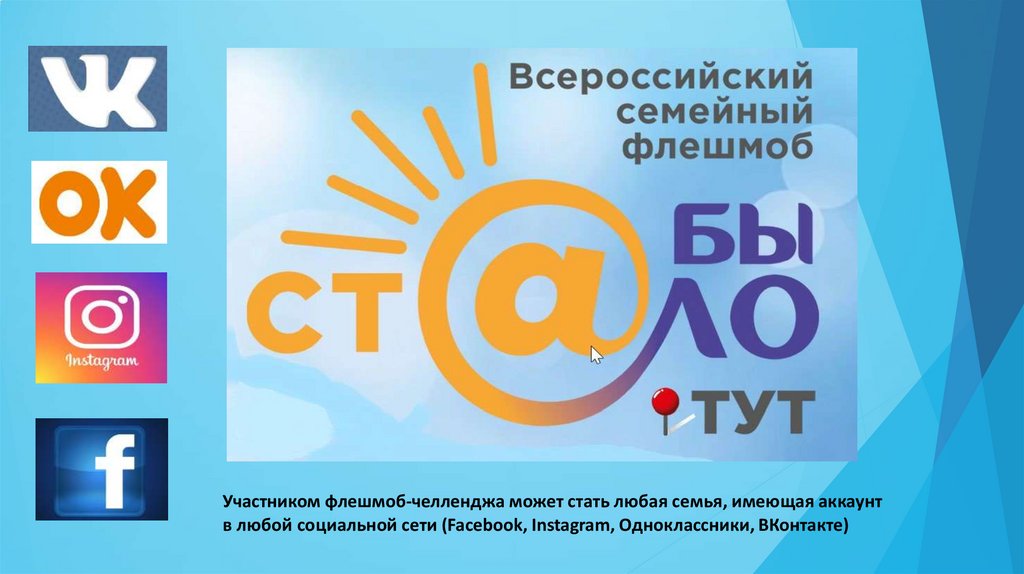 Участником флешмоб-челленджа может стать любая семья, имеющая аккаунтв любой социальной сети (Faсebook, Instagram, Одноклассники, ВКонтакте)