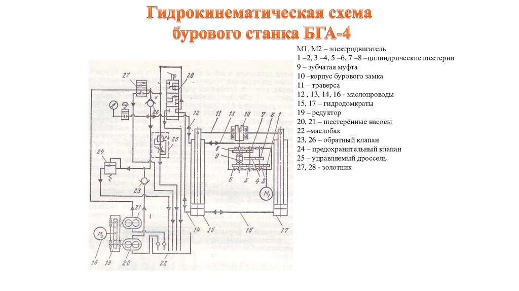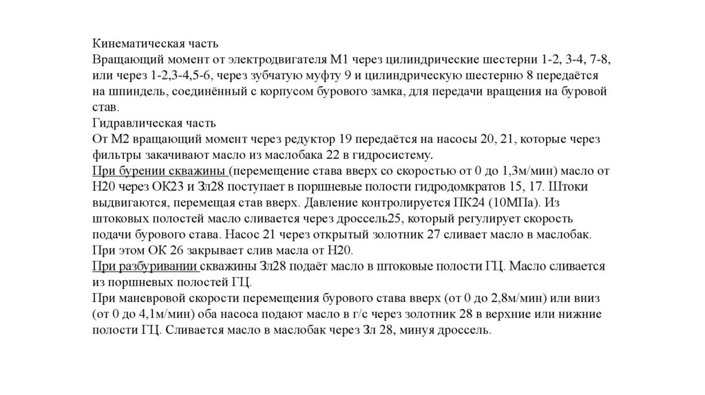подачи бурового става. Насос 21 через открытый золотник 27 сливает масло в маслобак.