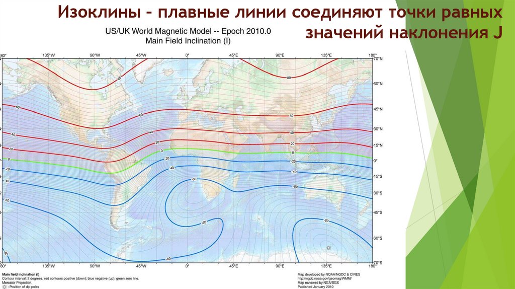 Изоклины – плавные линии соединяют точки равныхзначений наклонения J