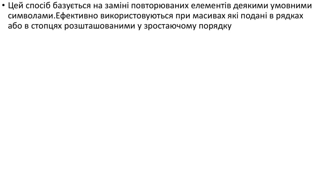 • Цей спосіб базується на заміні повторюваних елементів деякими умовними