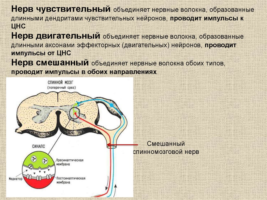 Нерв смешанный объединяет нервные волокна обоих типов,