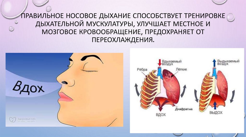 ПРАВИЛЬНОЕ НОСОВОЕ ДЫХАНИЕ СПОСОБСТВУЕТ ТРЕНИРОВКЕДЫХАТЕЛЬНОЙ МУСКУЛАТУРЫ, УЛУЧШАЕТ МЕСТНОЕ И