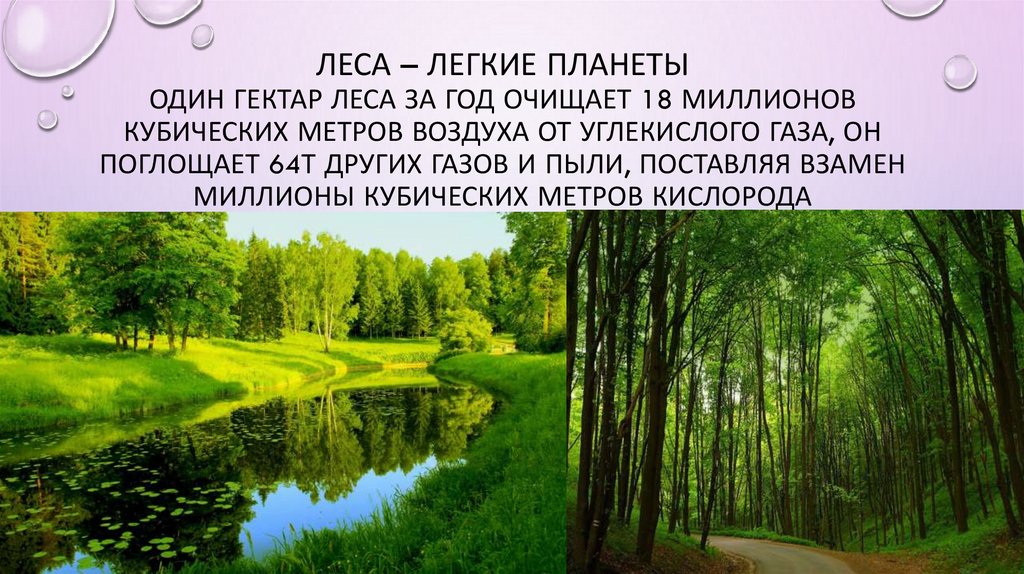 ЛЕСА – ЛЕГКИЕ ПЛАНЕТЫОДИН ГЕКТАР ЛЕСА ЗА ГОД ОЧИЩАЕТ 18 МИЛЛИОНОВ