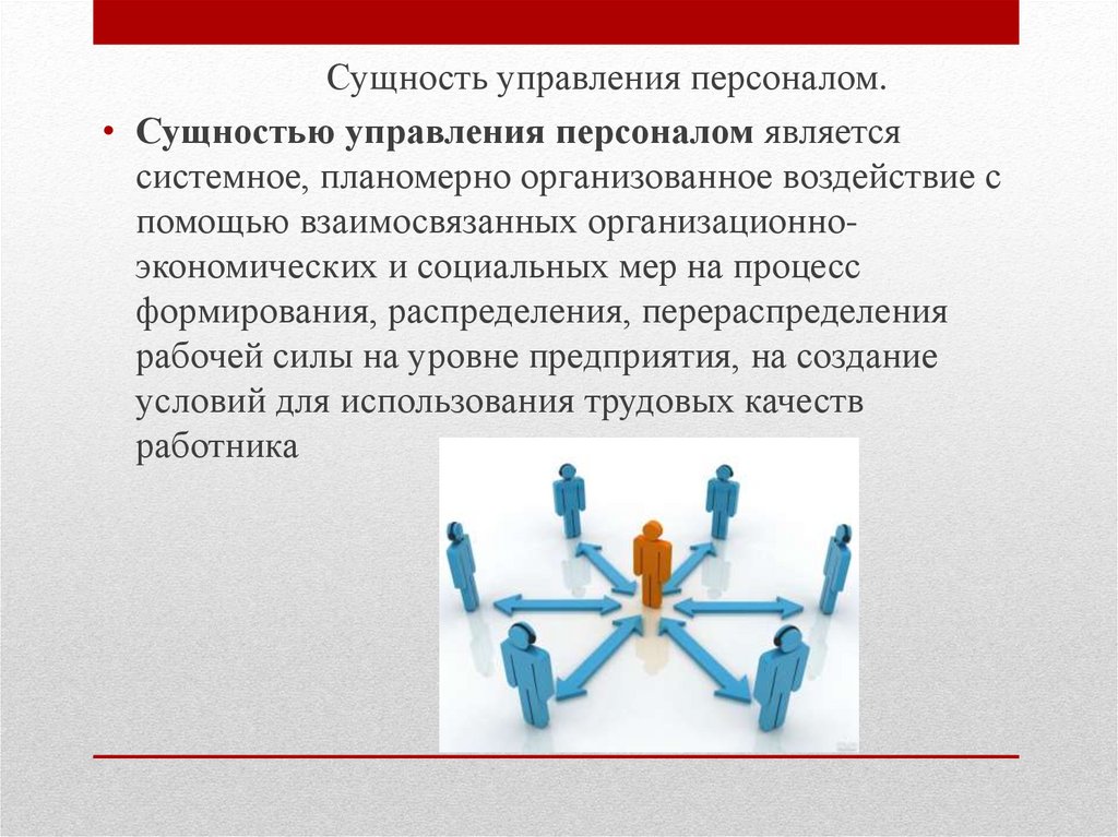 Сущность управления персоналом.• Сущностью управления персоналом является