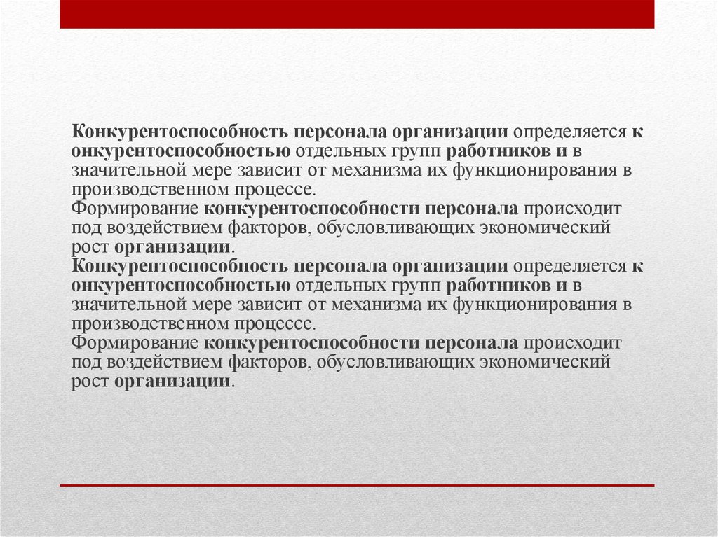 Конкурентоспособность персонала организации определяется конкурентоспособностью отдельных групп работников и в