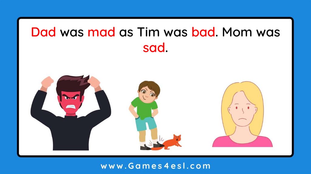 Dad was mad as Tim was bad. Mom was
