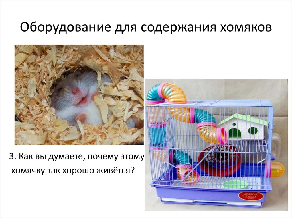 Оборудование для содержания хомяков3. Как вы думаете, почему этому