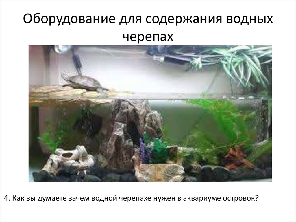 4. Как вы думаете зачем водной черепахе нужен в аквариуме островок?