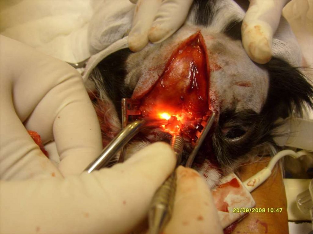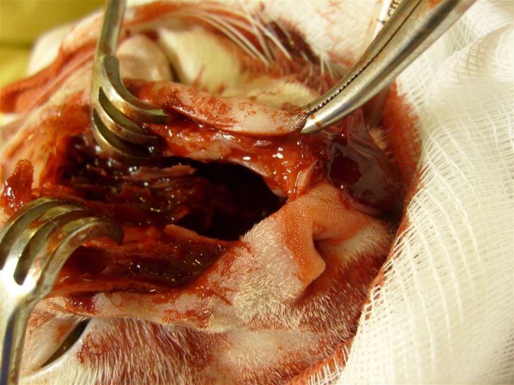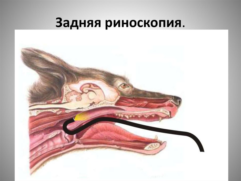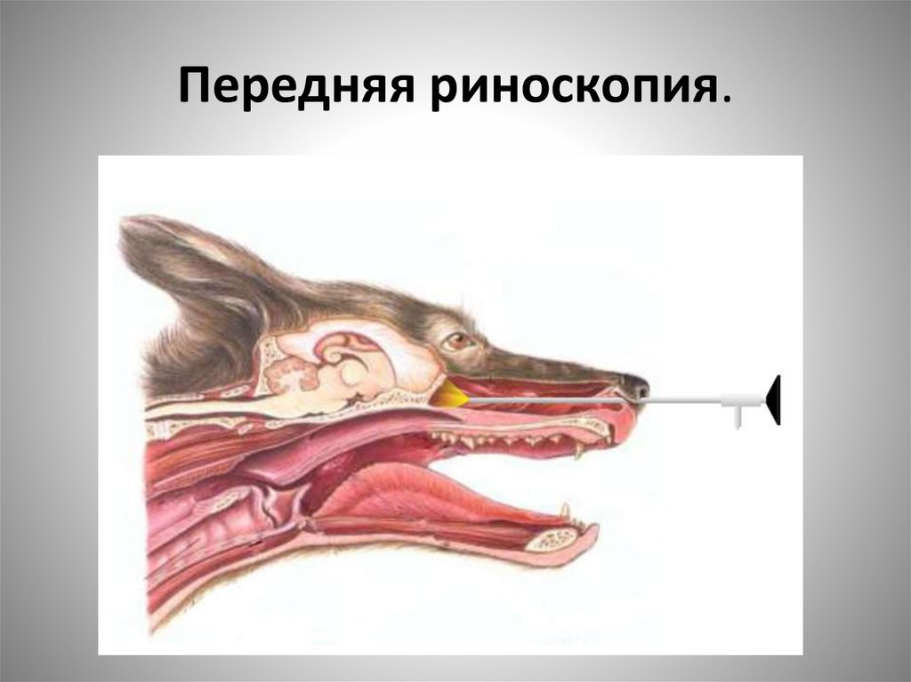 • При риноскопии показана седация животного