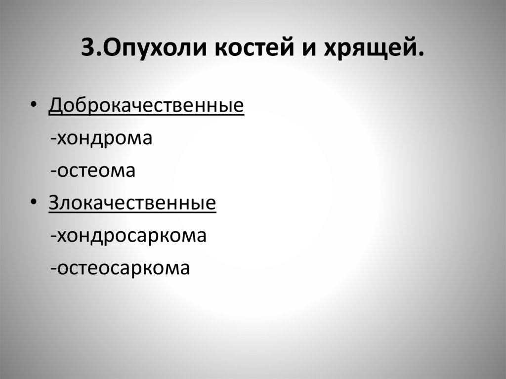 3.Опухоли костей и хрящей.• Доброкачественные