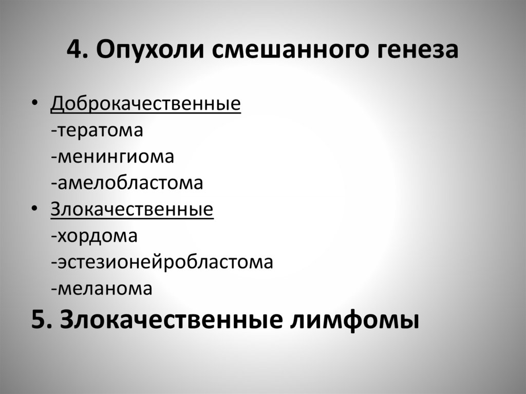 4. Опухоли смешанного генеза• Доброкачественные