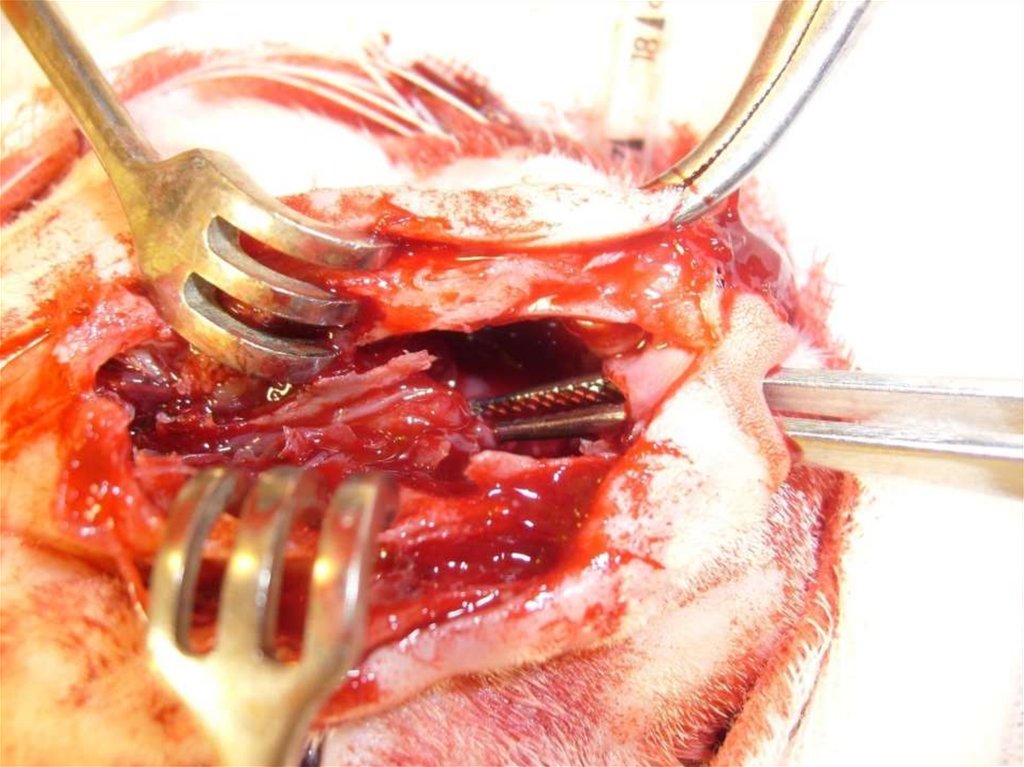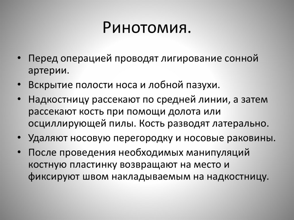 Ринотомия.• Перед операцией проводят лигирование сонной