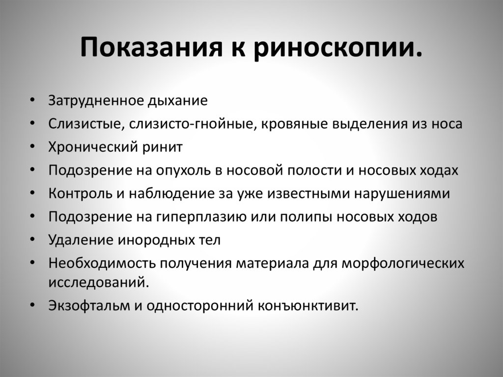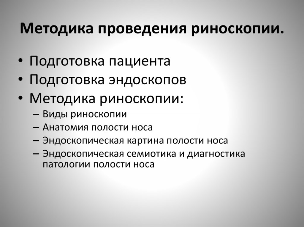 Методика проведения риноскопии.• Подготовка пациента