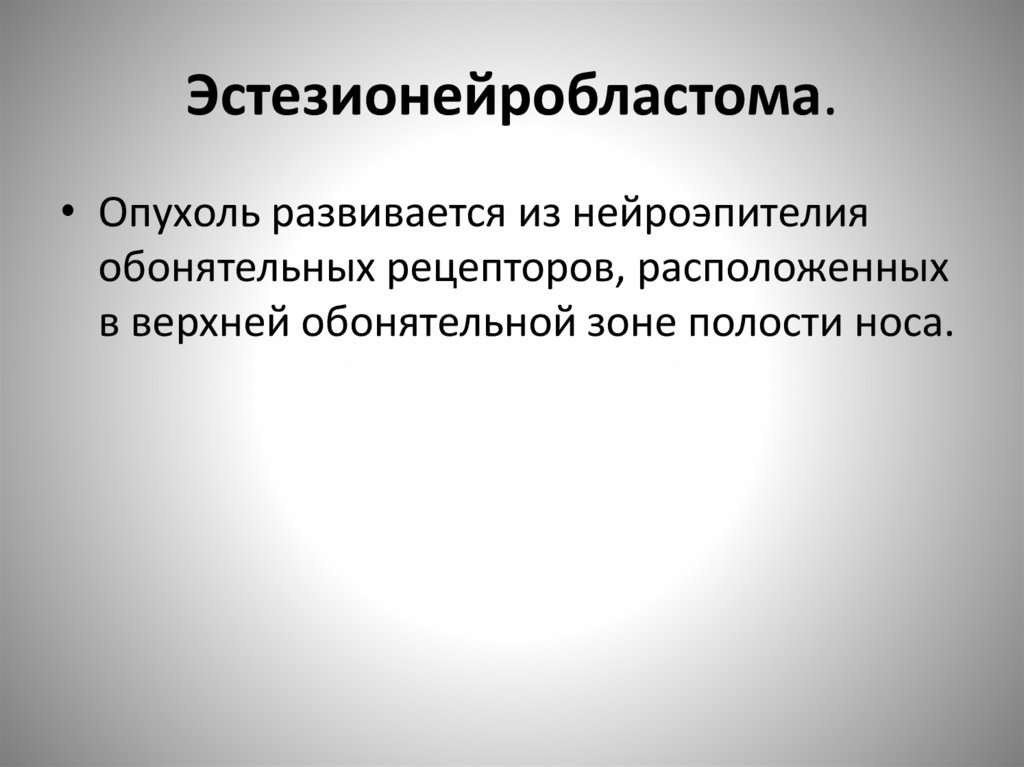 Эстезионейробластома.• Опухоль развивается из нейроэпителия