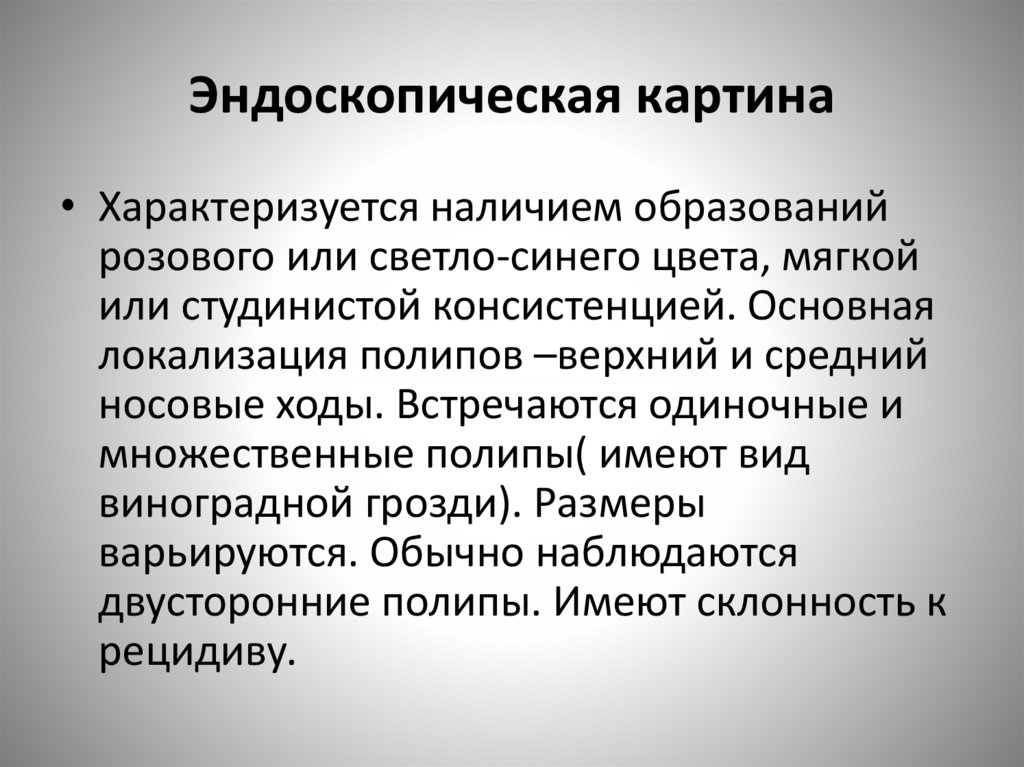 Эндоскопическая картина• Характеризуется наличием образований