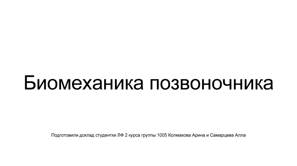 Биомеханика позвоночникаПодготовили доклад студентки ЛФ 2 курса группы 1005 Колмакова Арина и Самарцева Алла