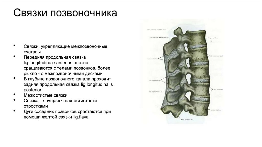 Связки позвоночникаСвязки, укрепляющие межпозвоночные