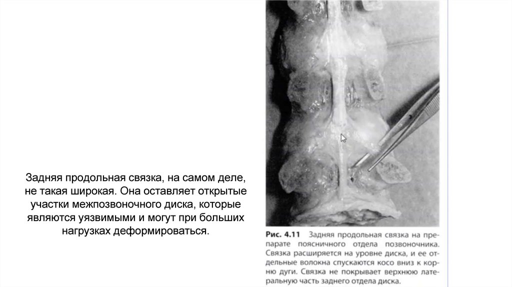 Задняя продольная связка, на самом деле,не такая широкая. Она оставляет открытые