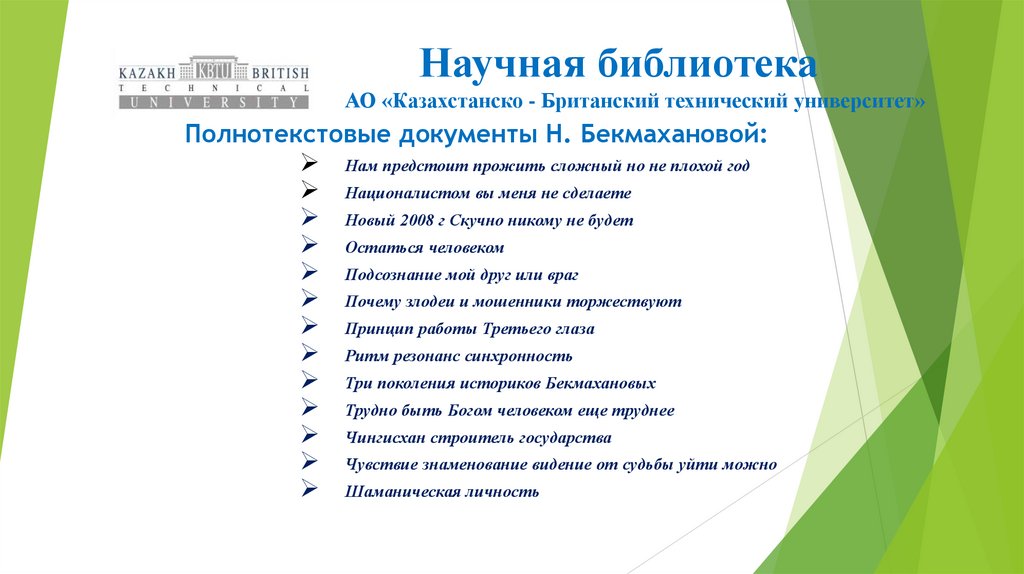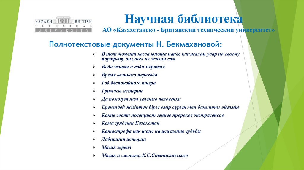 Научная библиотекаАО «Казахстанско - Британский технический университет»