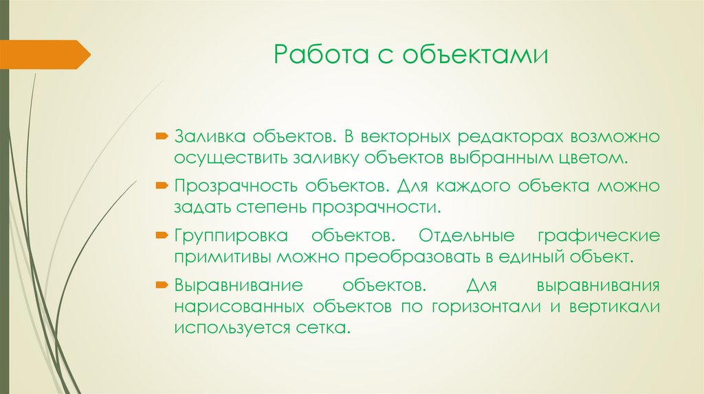 Работа с объектамиЗаливка объектов. В векторных редакторах возможно