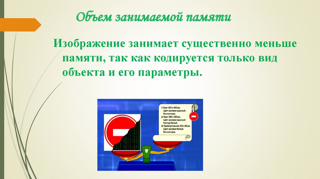 Объем занимаемой памятиИзображение занимает существенно меньше